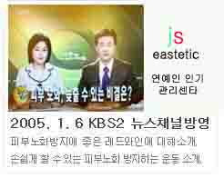 2005년 1월 6일 KBS2 뉴스채널에 방영되었습니다. 페이지 정보 작성자 JS에스테틱 조회 1,702회 작성일 05-01-07 09:34 본문 1월 6일 아침 8시에 KBS2 뉴스채널에 방영되었어요~촬영을위해 수고해 주신 PD및 감독님,리포터 언니와 작가님 모두모두 감사드립니다. 목록